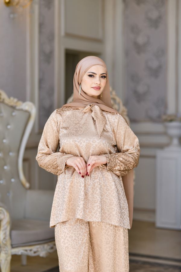 . غادة طقم أنيق يجمع بين النعومة والشخصية. خاماتو الرقيقة وقصّتو العصرية تعطي إطلالة متأنقة ومريحة، مثاليّة للّي تحب تبرز بأناقة وذوق