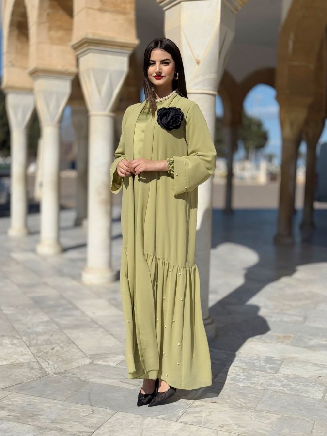 Fadwa est une abaya élégante et raffinée. Son tissu doux et léger épouse parfaitement la silhouette, tandis que ses finitions délicates ajoutent une touche de grâce et de modernité.