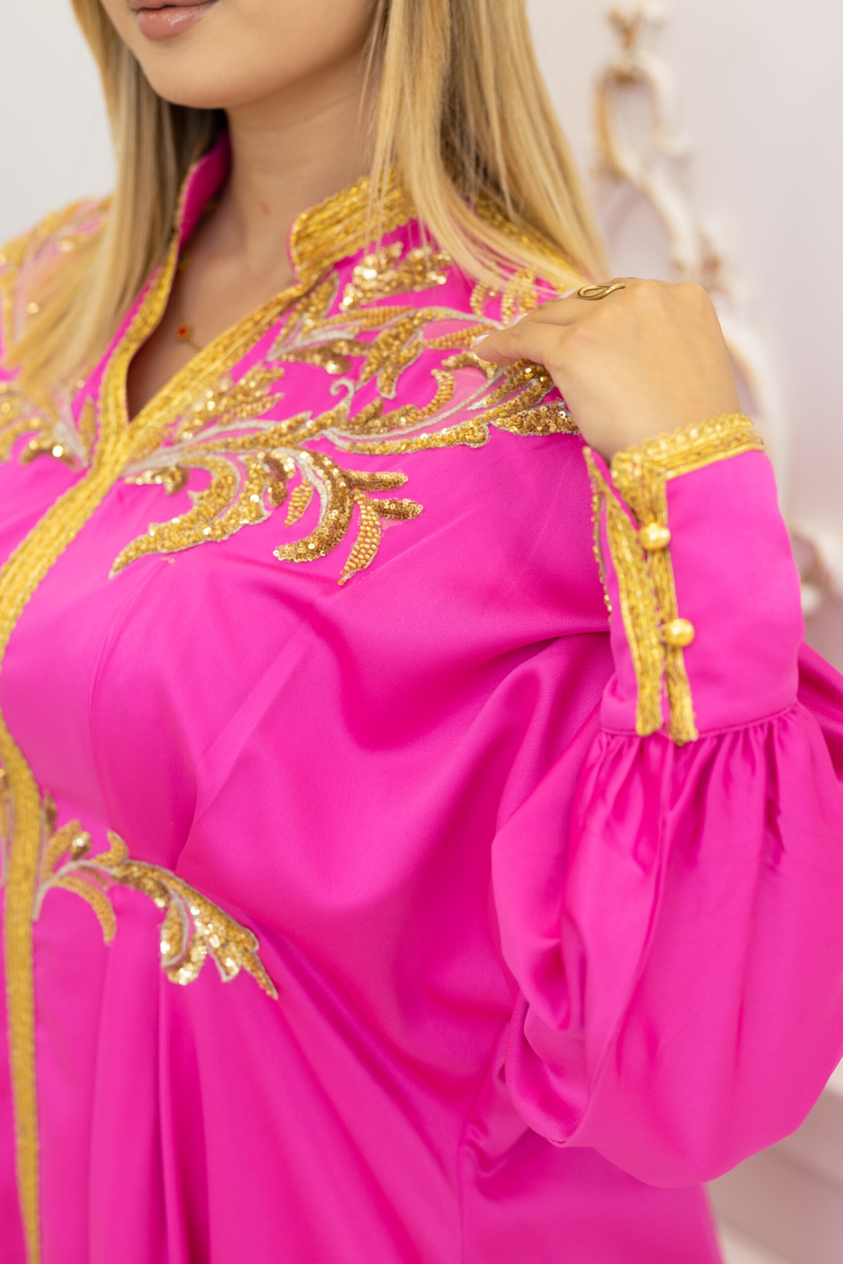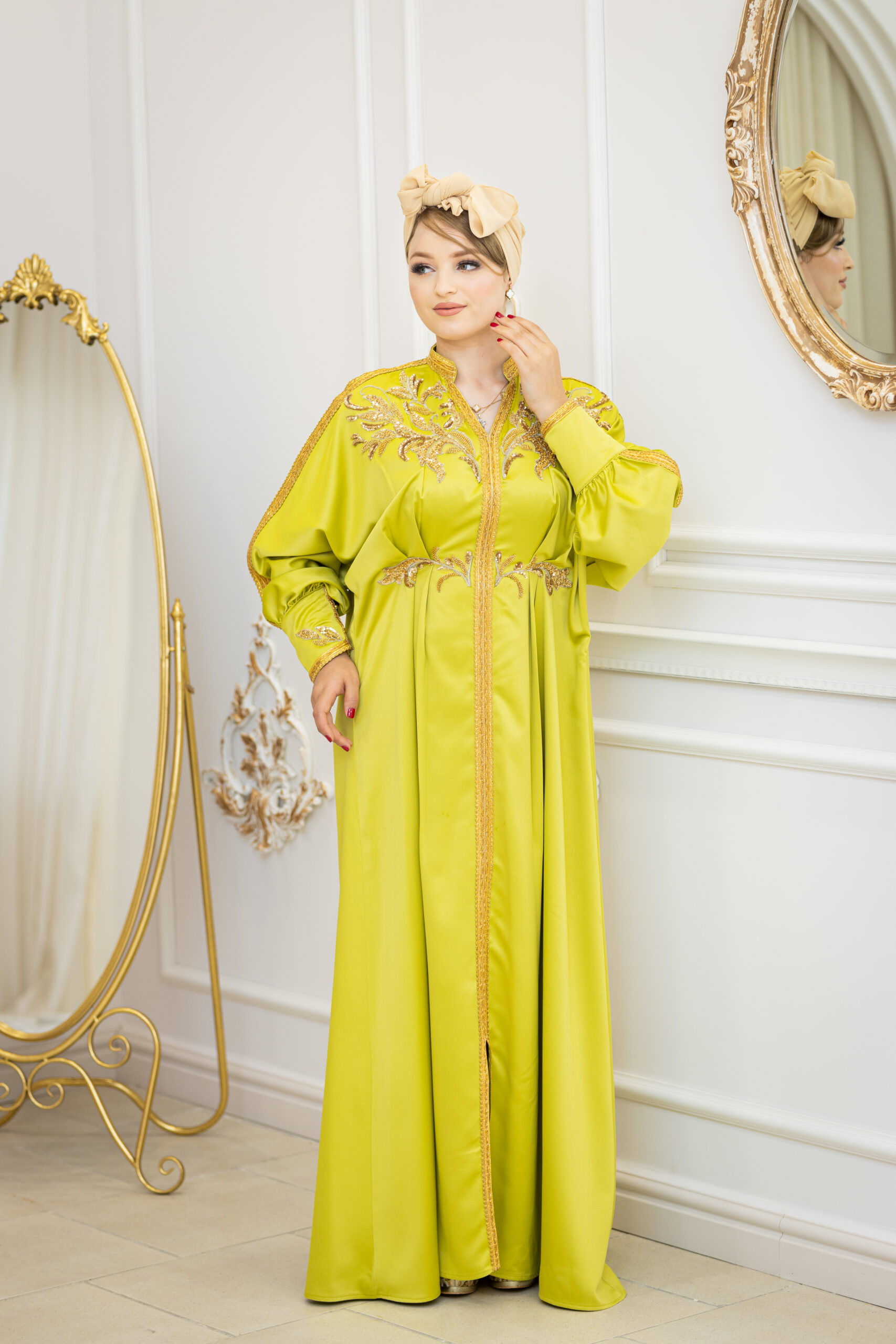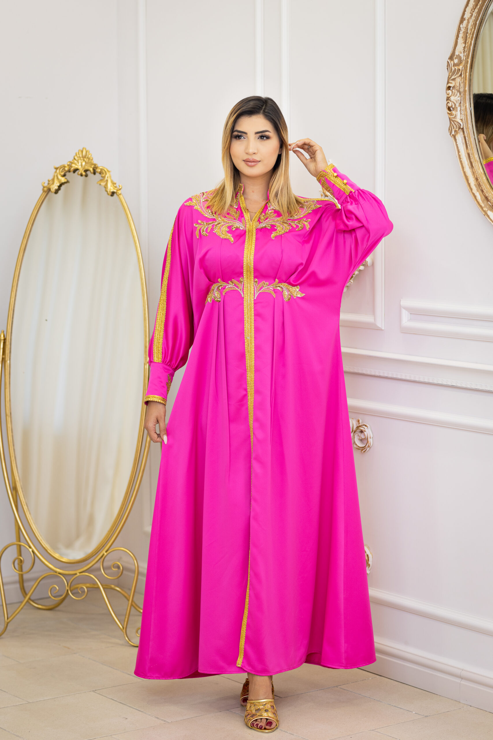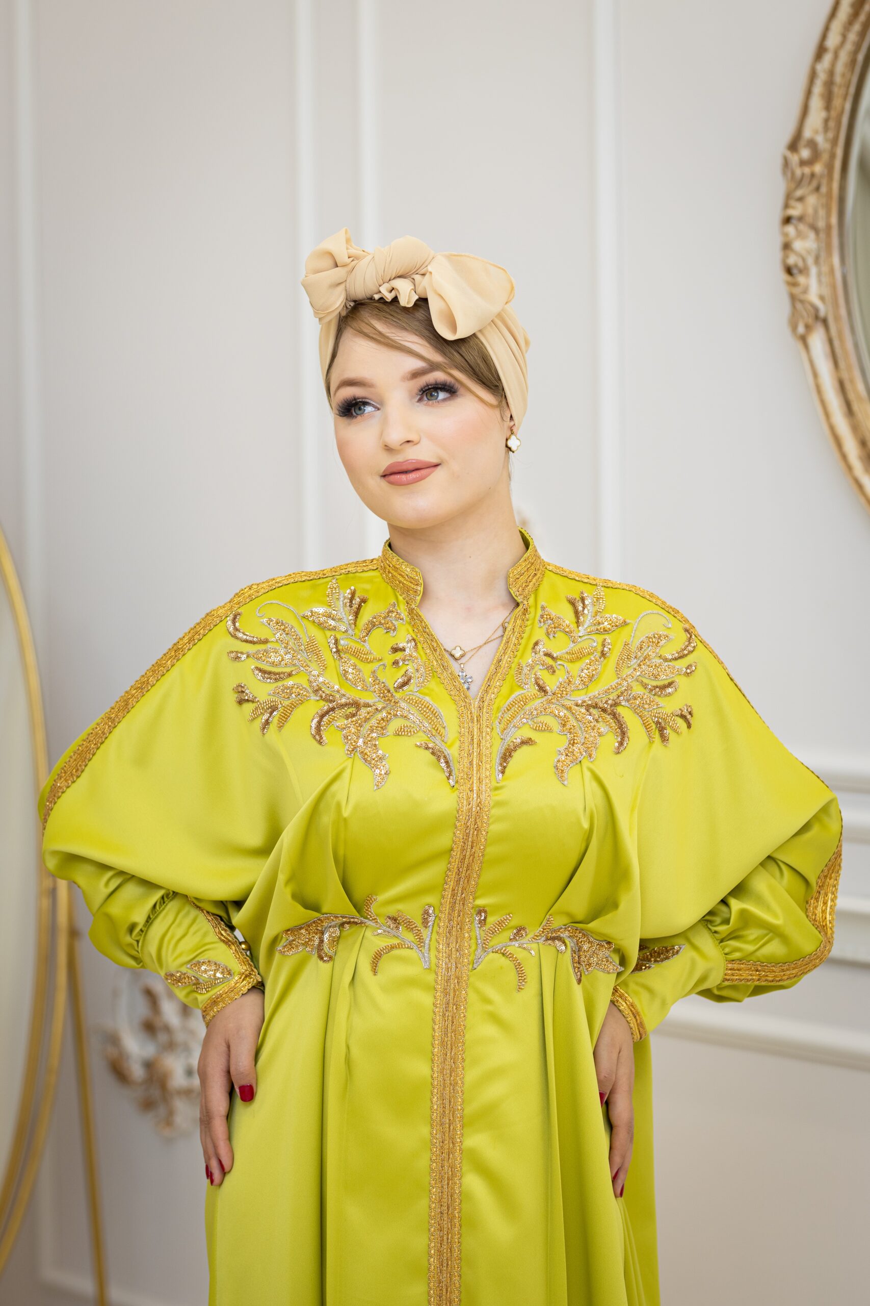 Bahar est un kaftan qui incarne la grâce et la tradition avec une touche contemporaine. Son tissu fluide et ses broderies délicates mettent en valeur une élégance subtile et intemporelle.