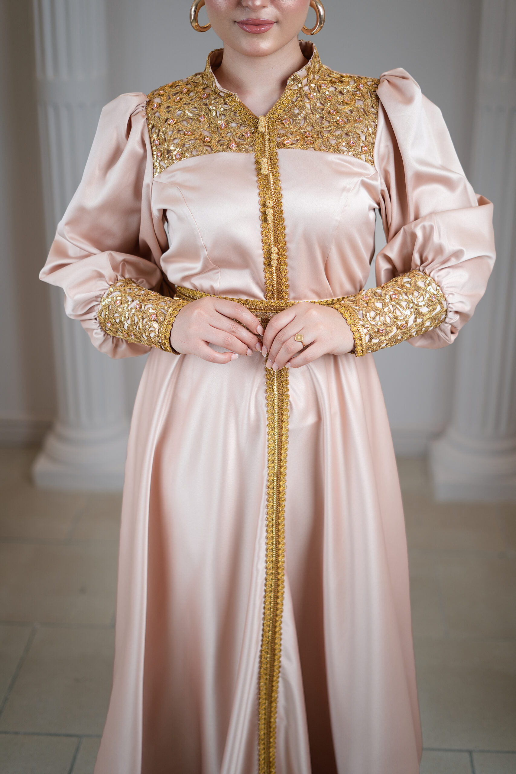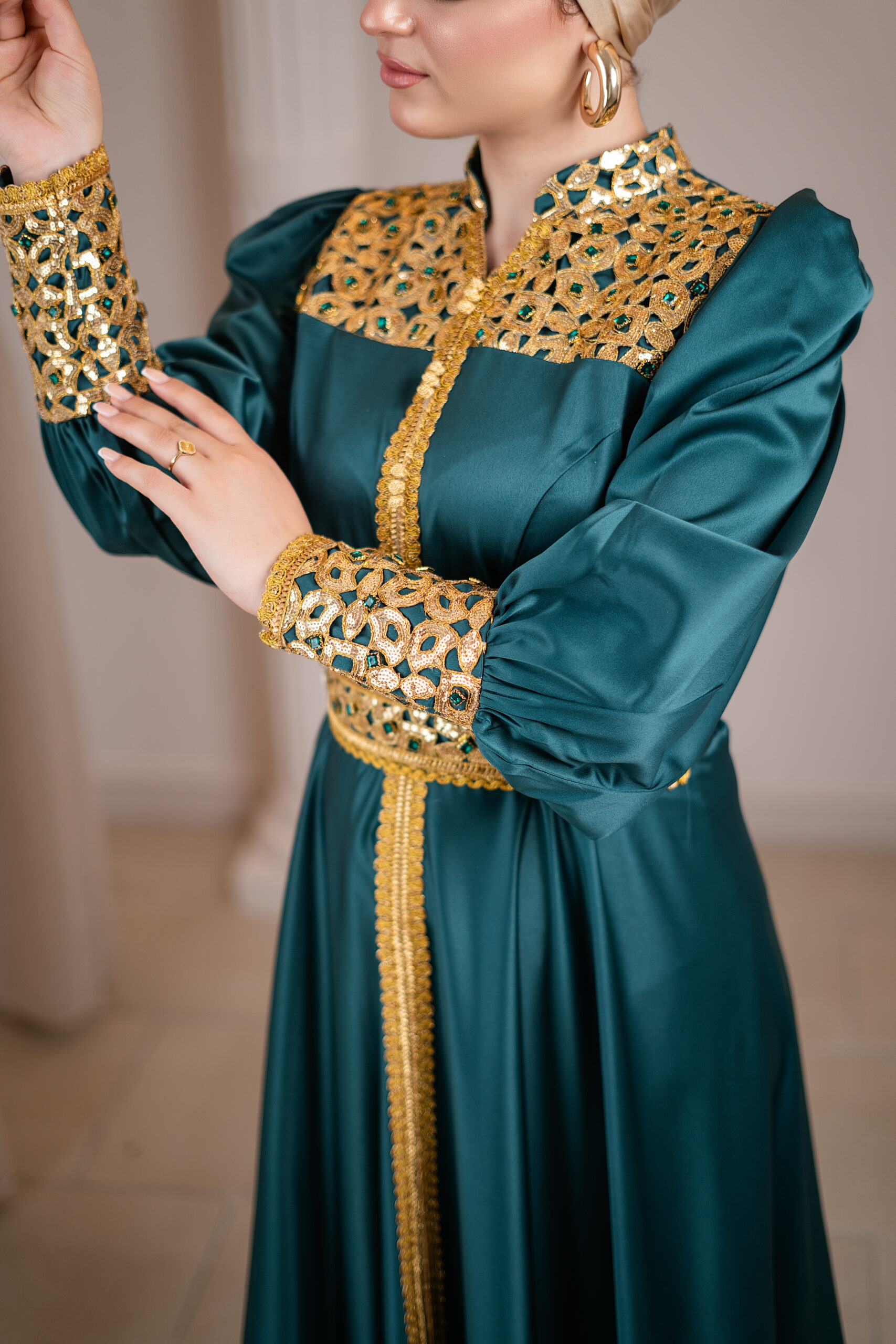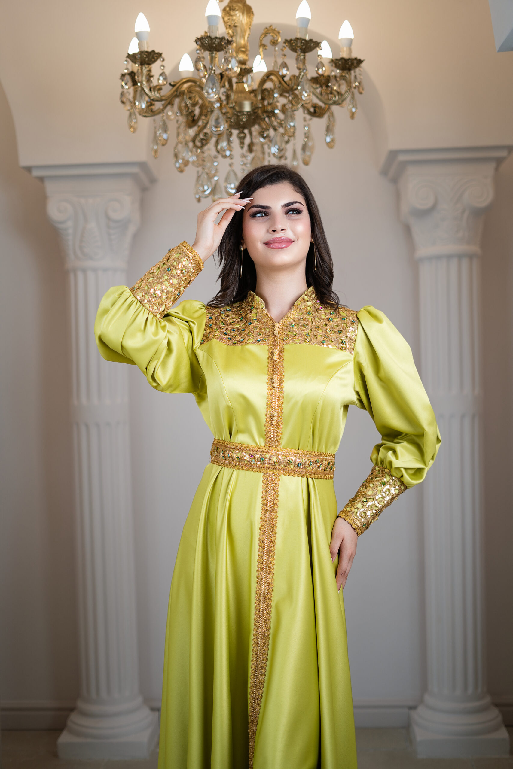 Fattouma est un koftan au charme authentique, inspiré des traditions d’antan avec une touche de modernité. Son tissu riche et ses finitions délicates racontent une histoire d’élégance et de caractère.