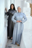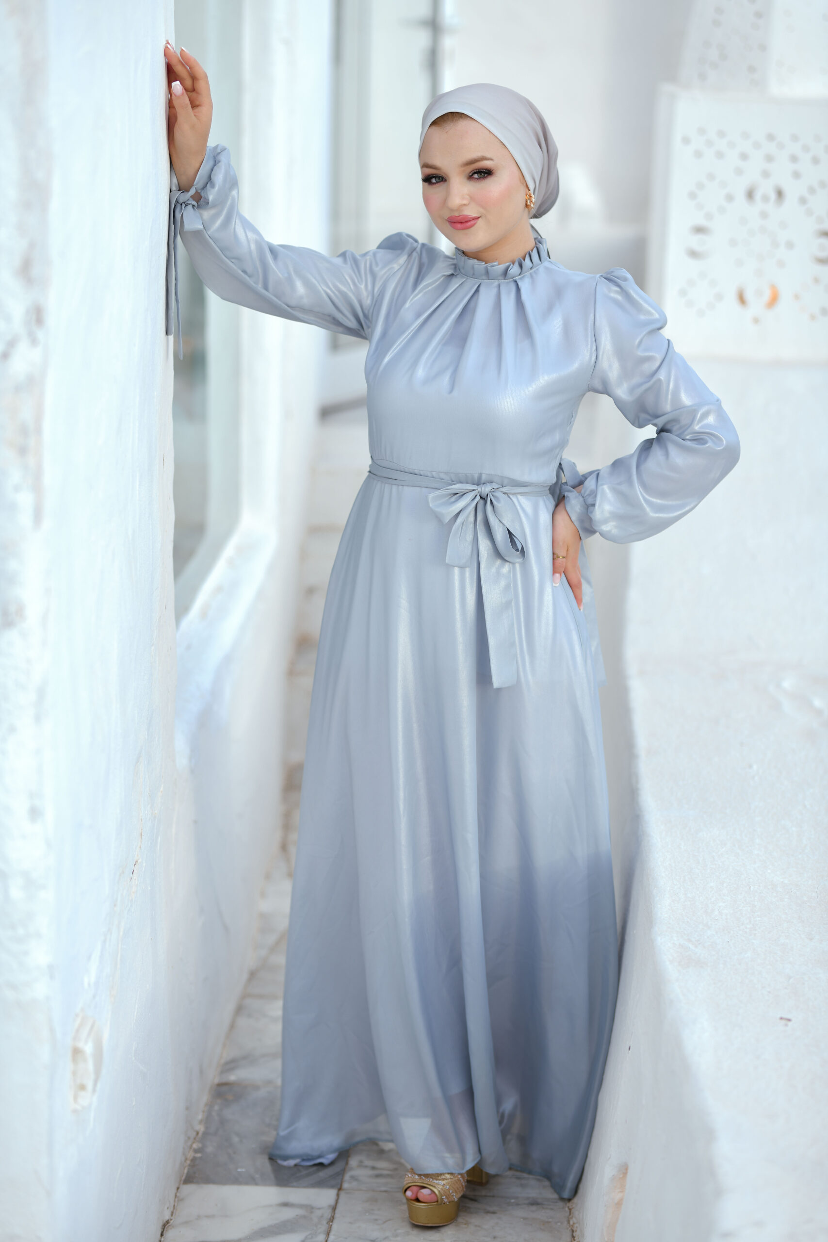 . أنجا فستان فيه أناقة مميزة وسحر هادئ. معمول خصّيصًا للحظات المميزة، بقماش راقي وقصّة تبرُز القوام بكلّ أنوثة