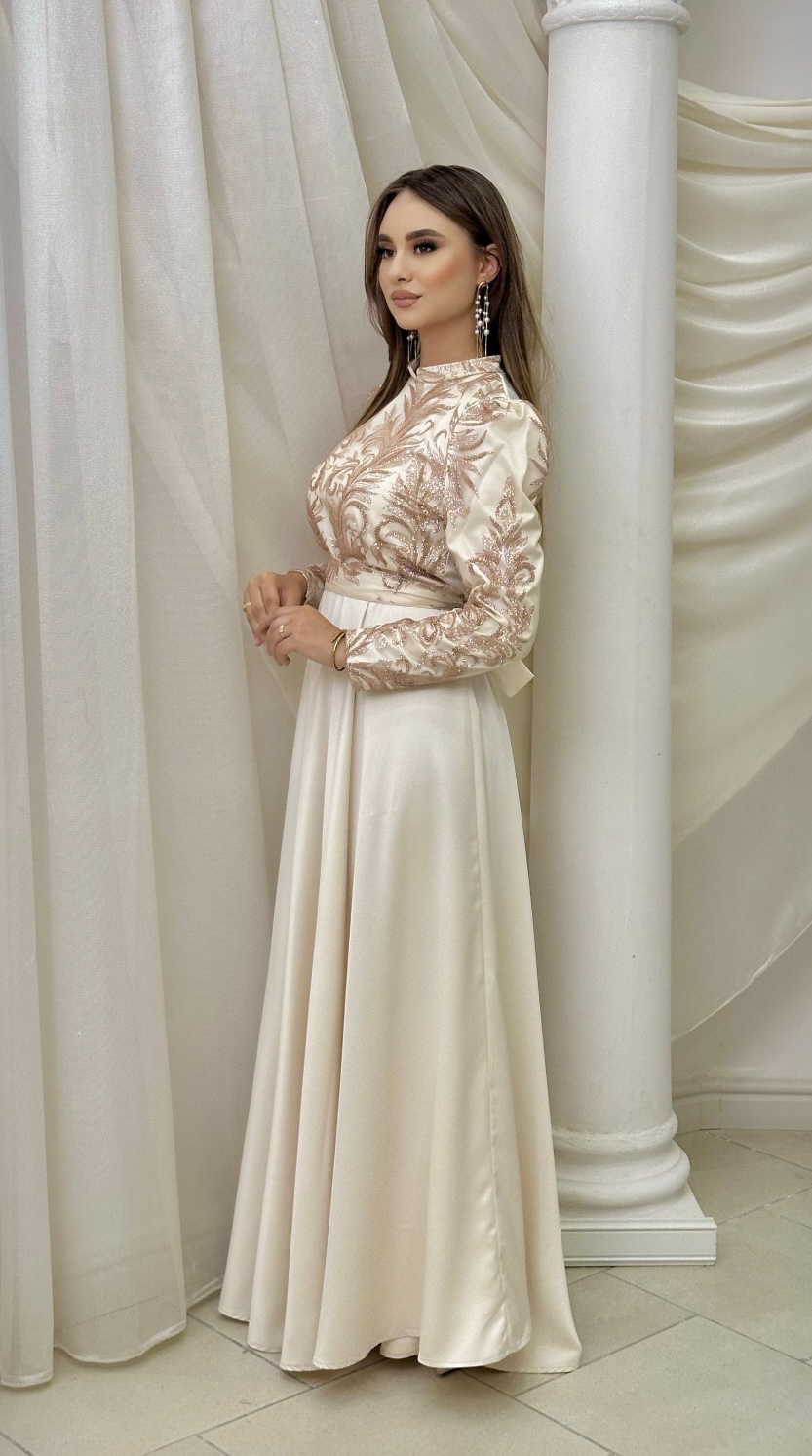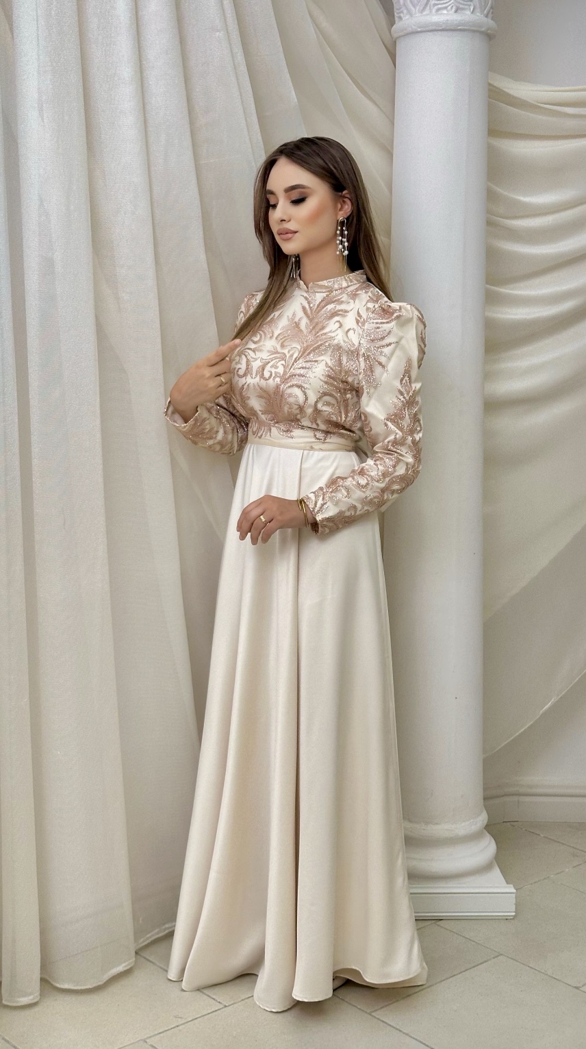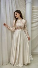 .ليليا فستان سهرة راقي يجمع بين النعومة والأناقة. قماشها الدقيق وقصّتها الانسيابية تعطي إطلالة شيك ومتأنقة، مثاليّة للمناسبات الكبرى