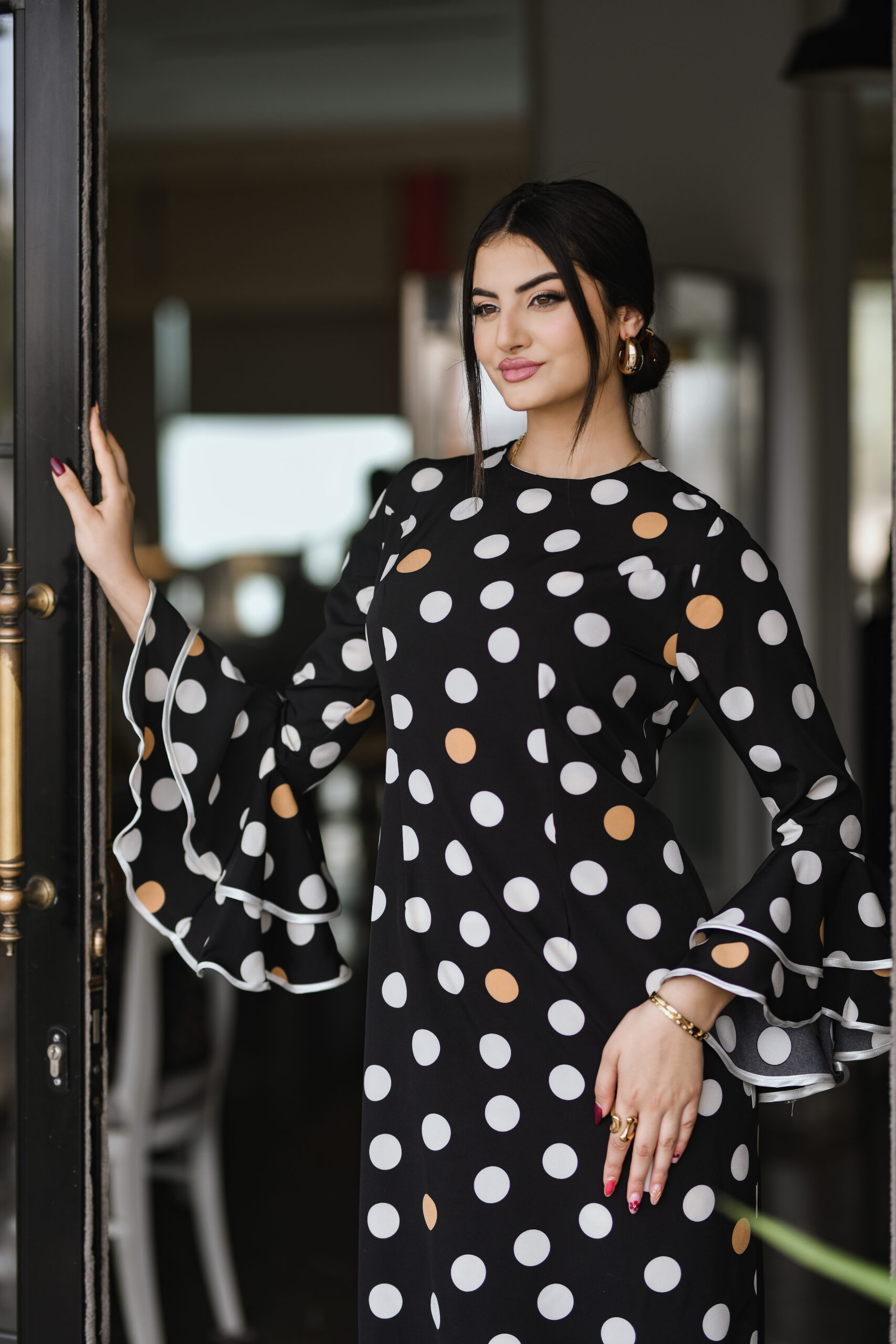 . ياقين فستان أنيق بأسلوب مريح. قماشها خفيف وقصّتها مريحة تعطي إطلالة طبيعية وراقية تناسب كل المناسبات